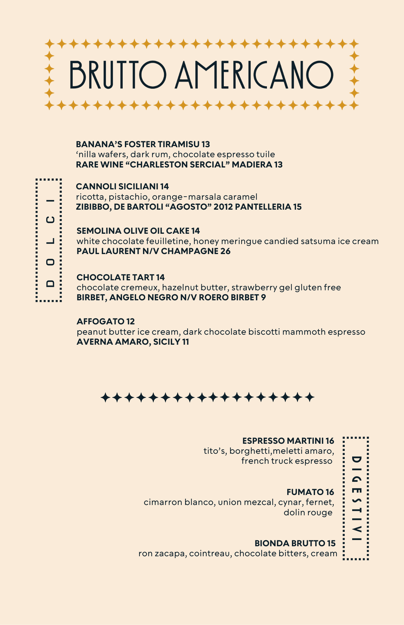 Whether you are hosting an intimate gathering, celebrating a special occasion, or simply seeking a moment of culinary indulgence. Brutto Americano would be delighted to host your next event.